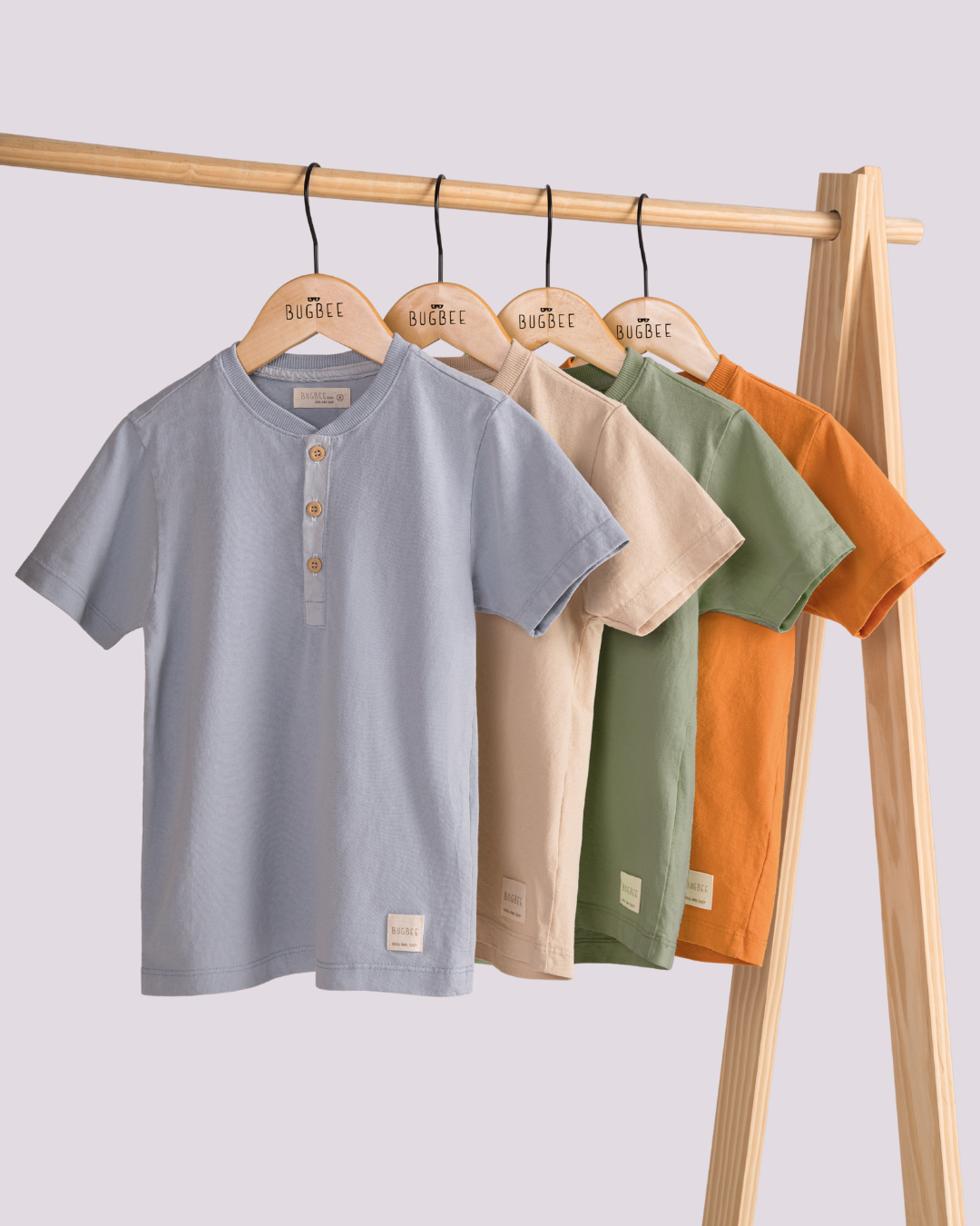 Camiseta infantil Bugbee confeccionada em algodão leve e macio, com abertura frontal de botões que traz charme e praticidade ao vestir. Modelagem confortável, ideal para o dia a dia e momentos de lazer.