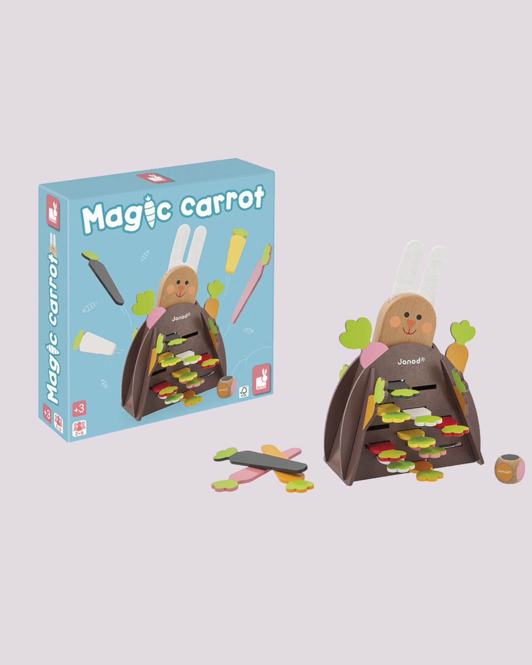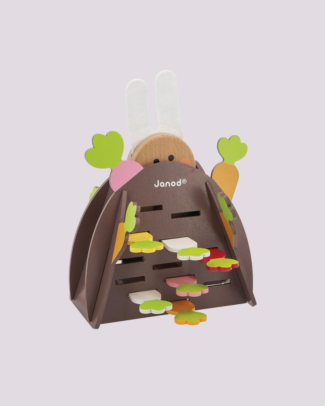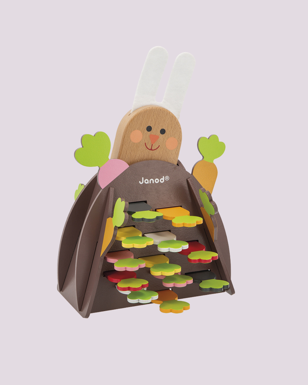 Jogo de habilidade em madeira com cenourinhas coloridas que desafiam a concentração e garantem diversão em família – Janod.