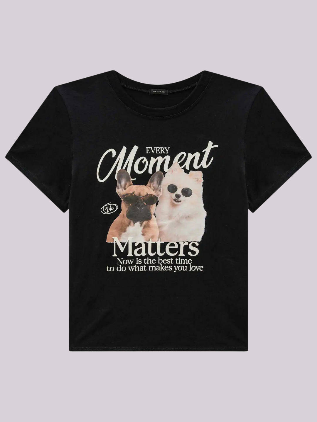 Camiseta preta com estampa de cachorrinhos — divertida, moderna e perfeita para o dia a dia.
