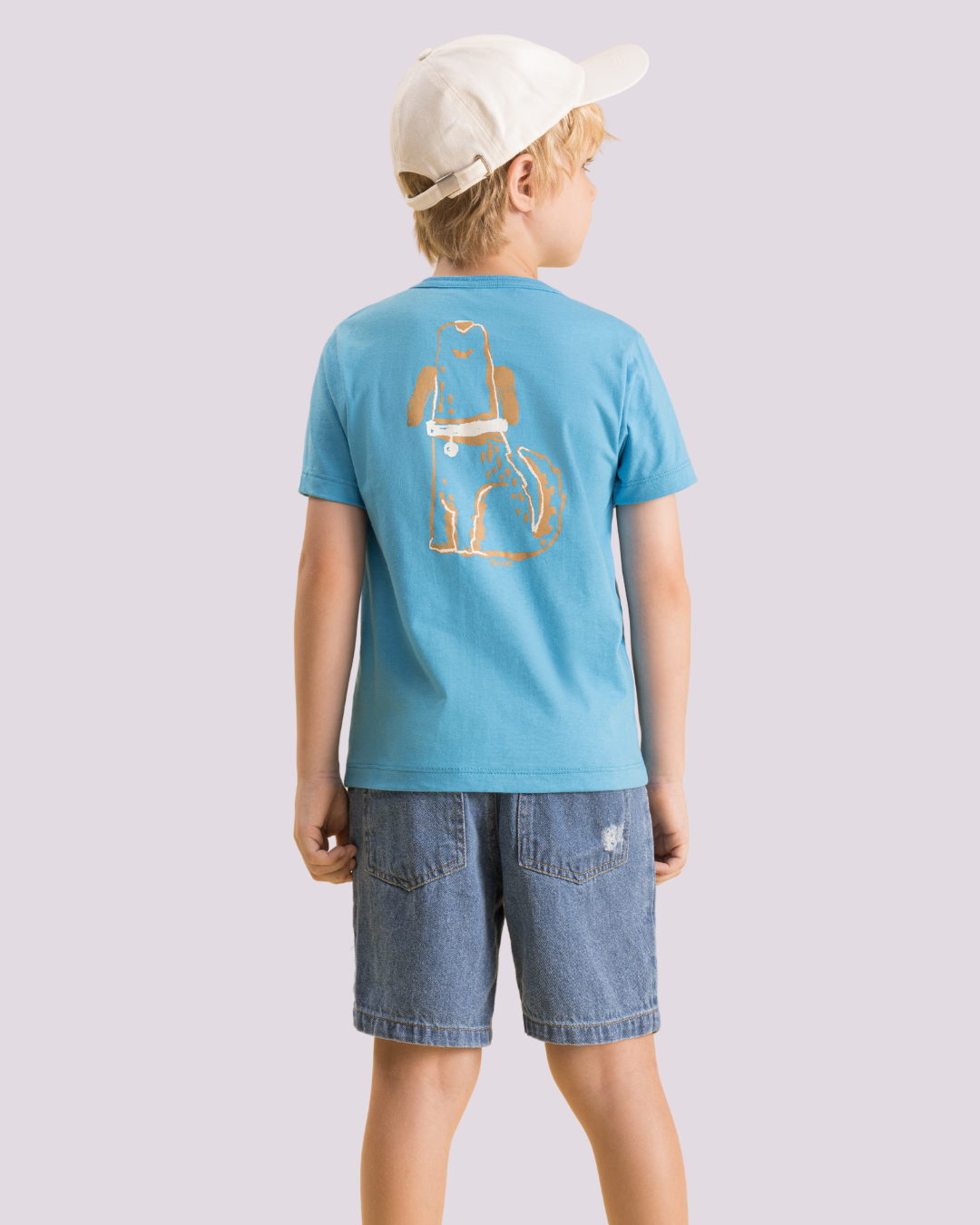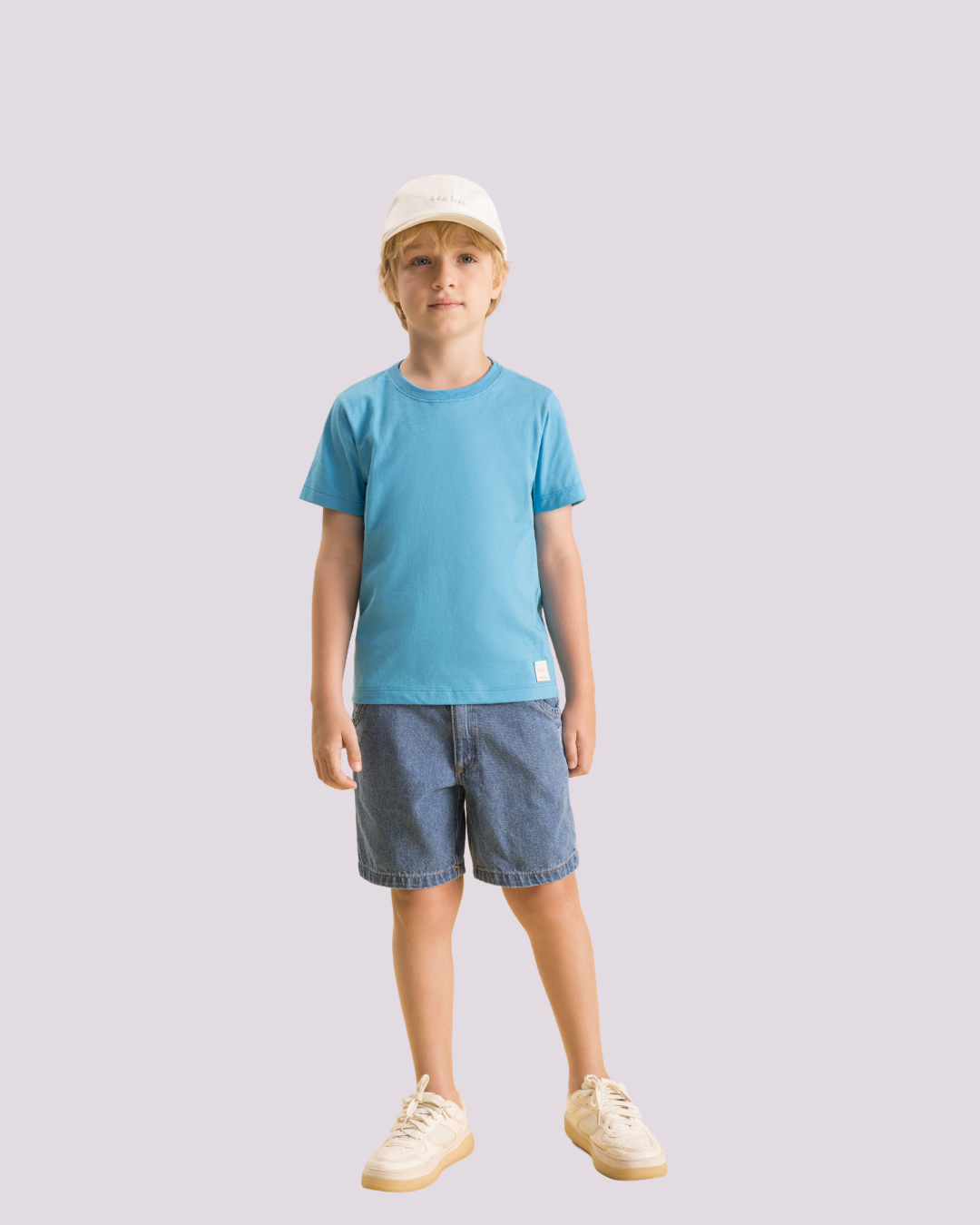 Camiseta infantil da marca Bugbee, composto por camiseta em malha azul básica ideal para o dia a dia. Um look prático, moderno e confortável, perfeito para brincar, passear ou curtir momentos em família com estilo.