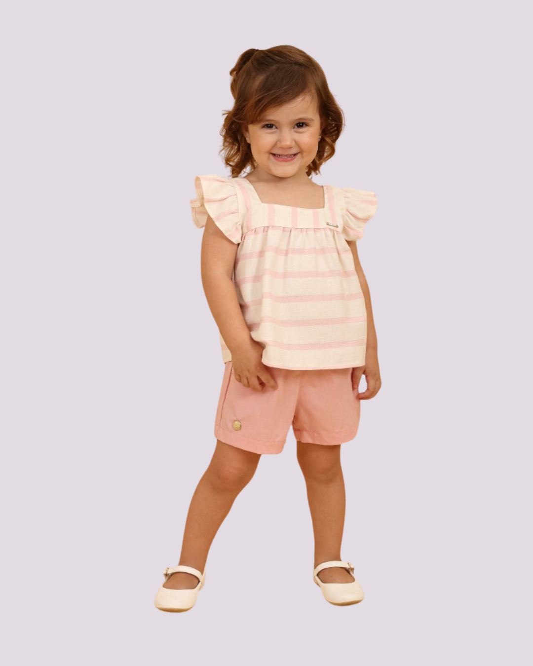 Conjunto Listrado Rosé leve, delicado e cheio de charme. O look perfeito para dias alegres e confortáveis!