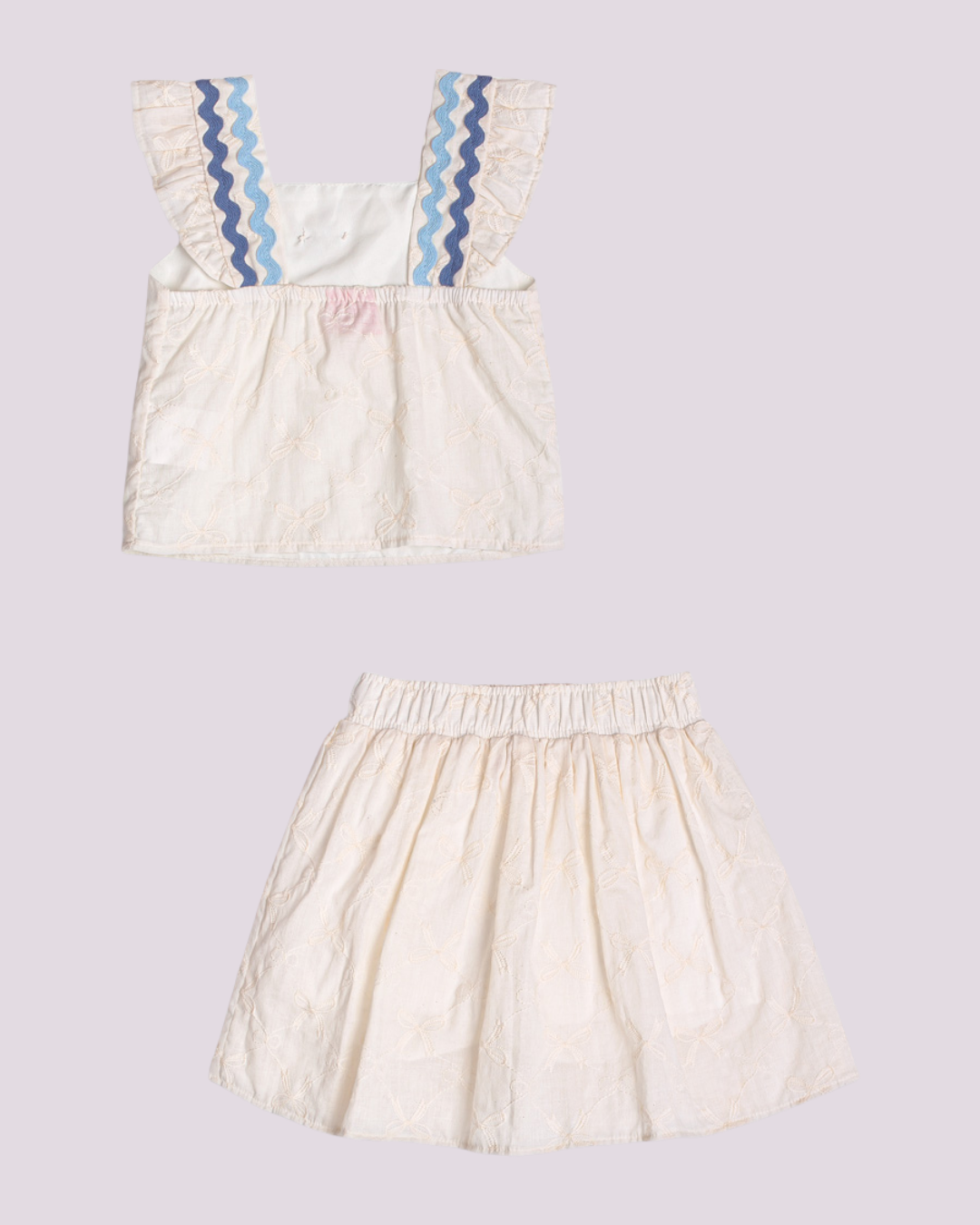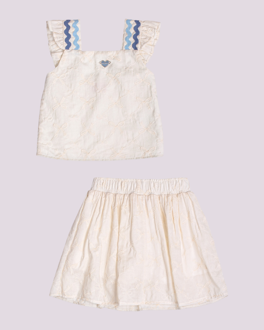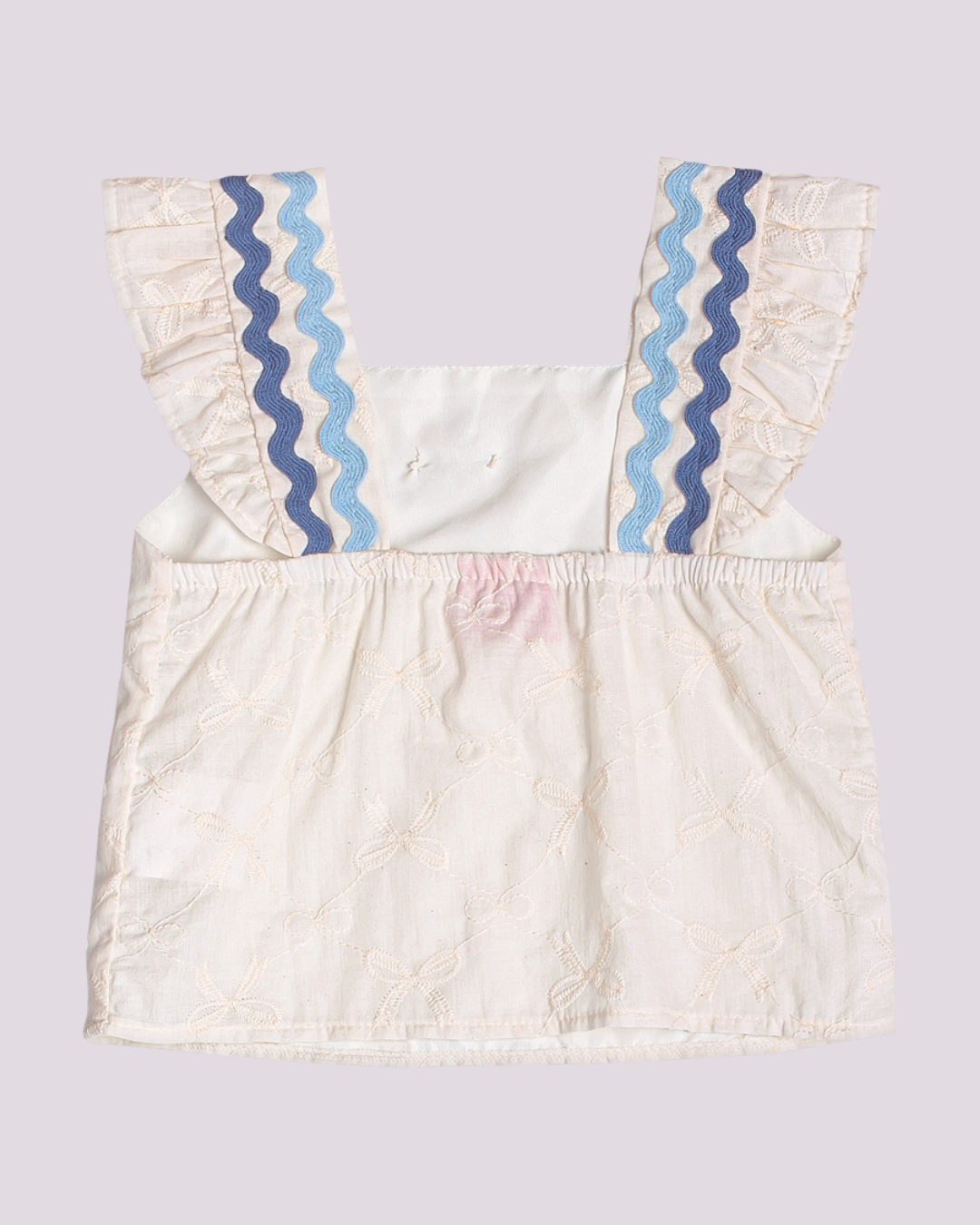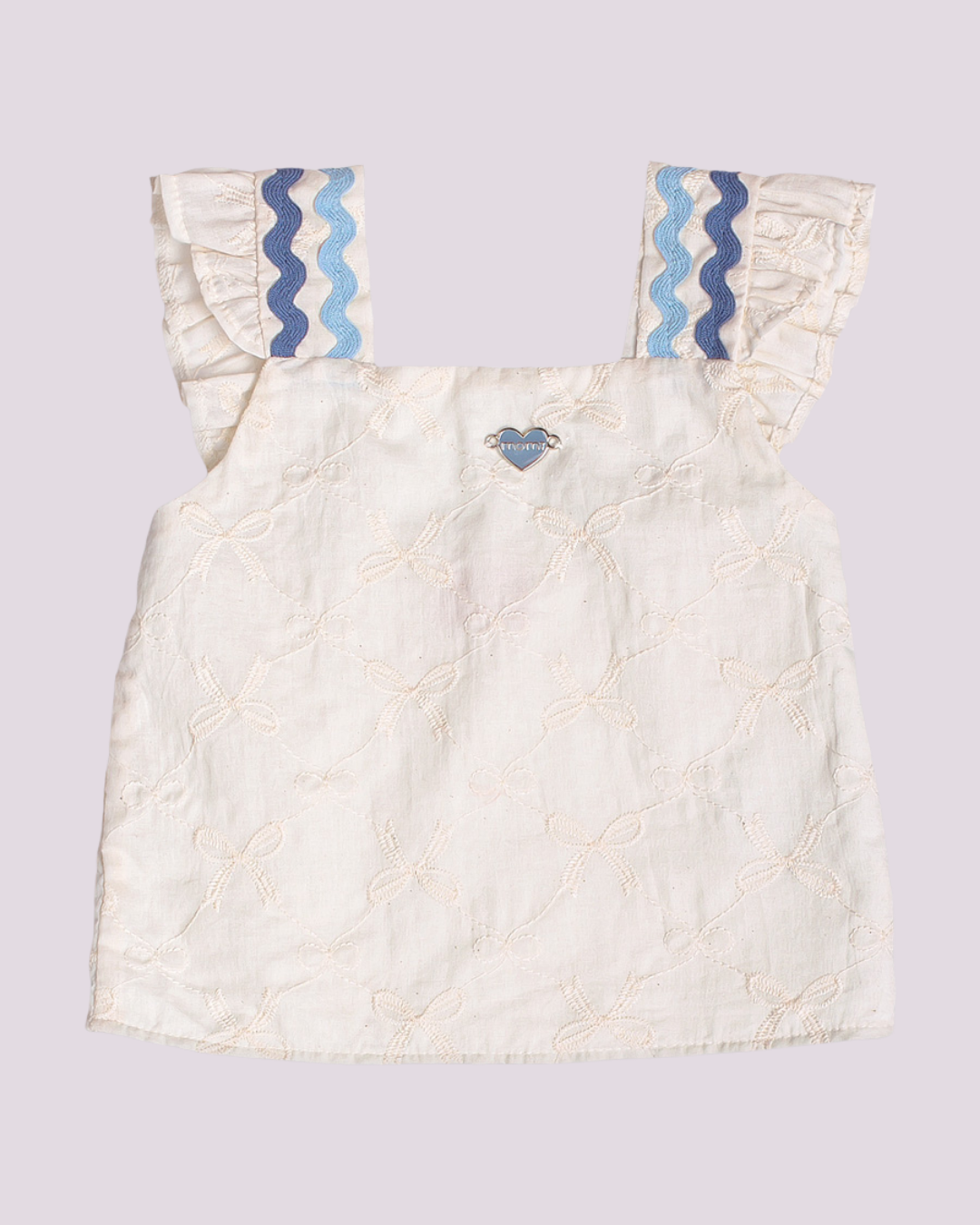 Blusa com mangas em laise e detalhe floral vazado, perfeita para looks frescos e charmosos.