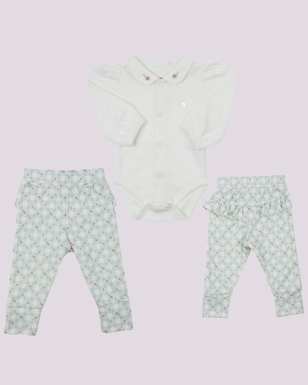 Conjunto Body Bordado e Calças Xadrez Grow Up — o equilíbrio perfeito entre conforto, charme e versatilidade.