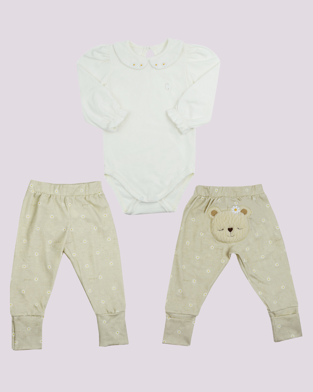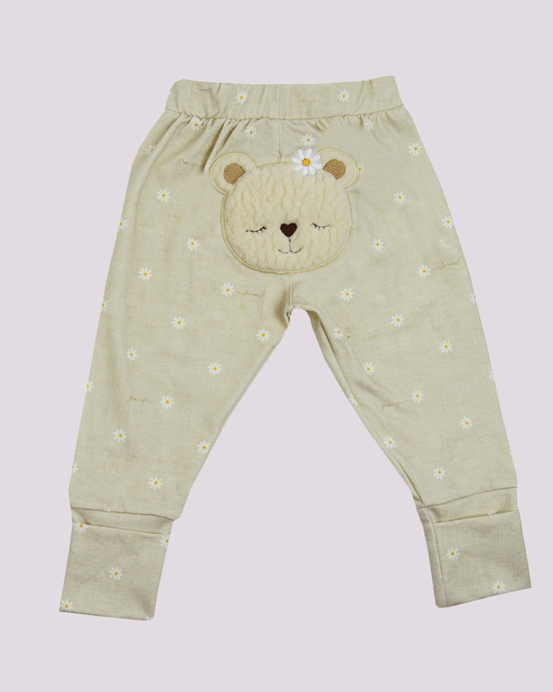 O destaque fica por conta do detalhe bordado em formato de ursinho aplicado na parte de trás da calça, trazendo um toque lúdico e encantador.