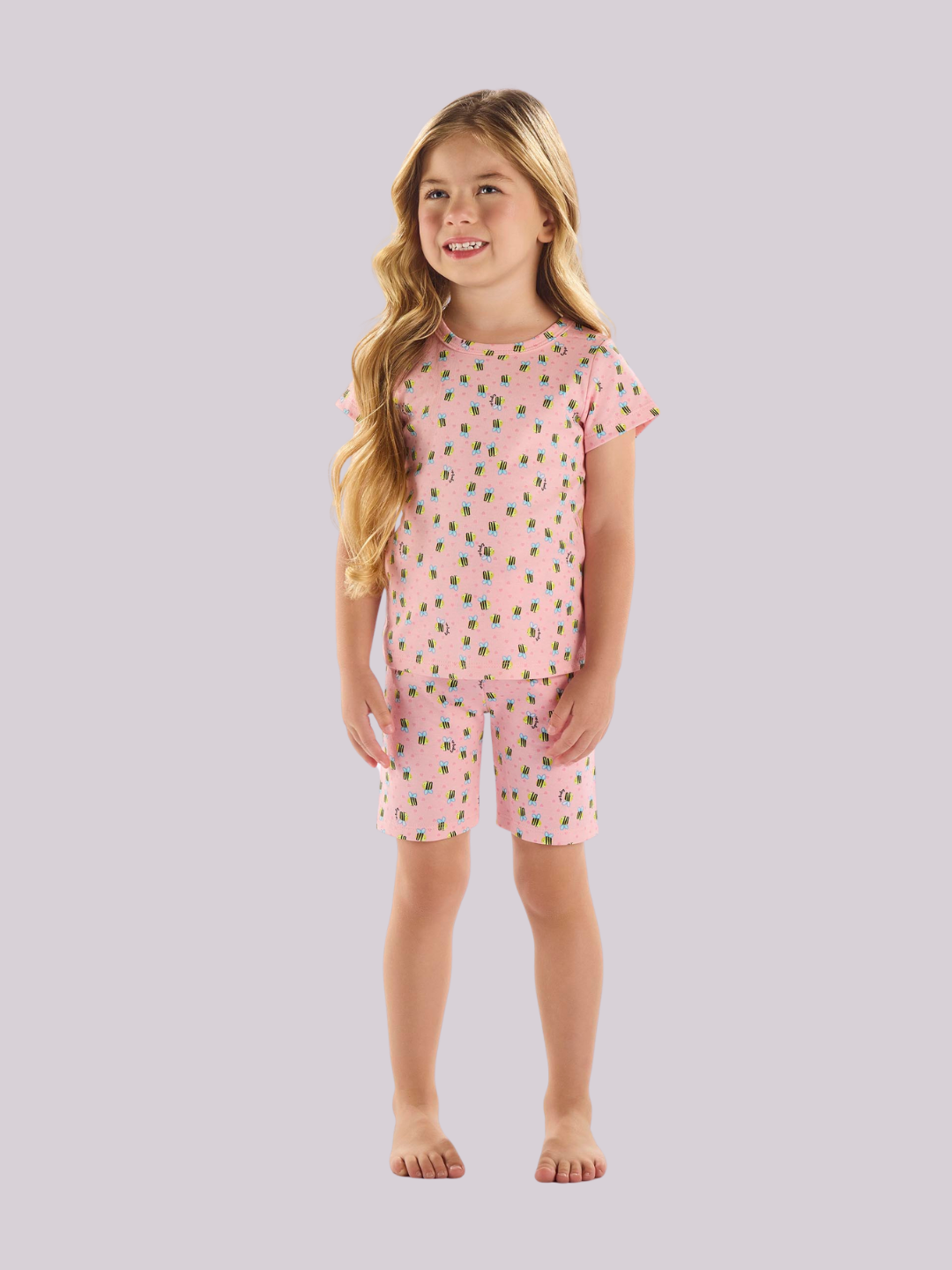 Pijama Infantil Feminino Colorido e cheio de alegria, este pijama é puro conforto para as noites das pequenas! Com estampa divertida Abelinhas  em tons suaves, traz o toque lúdico e delicado que as meninas amam. O tecido leve e macio garante bem-estar e liberdade para dormir e brincar.