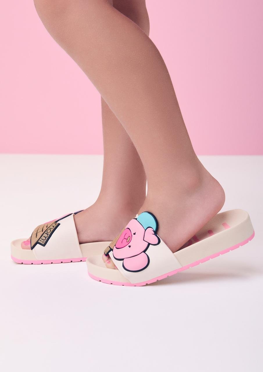 Chinelo infantil Momi com design lúdico e divertido, trazendo um ursinho fofo dentro de uma casquinha de sorvete em alto-relevo. Confeccionado em material leve e macio, garante conforto durante todo o dia, com solado antiderrapante que acompanha cada passo das pequenas com segurança. Um modelo alegre, cheio de personalidade.