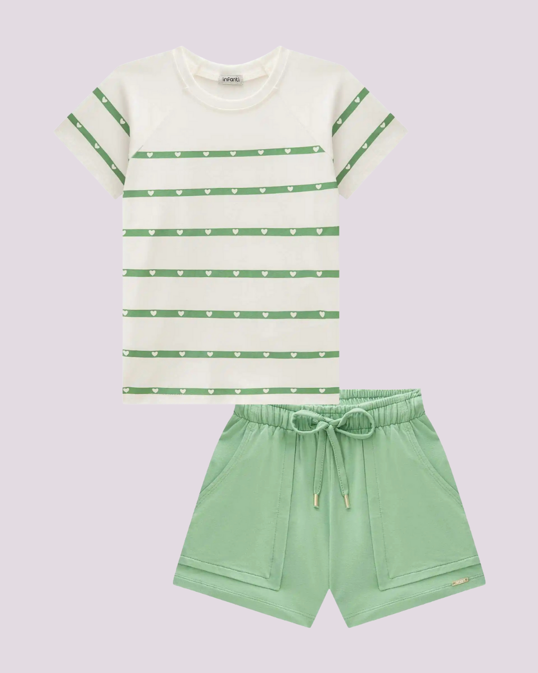 Conjunto Listrado Verde Infanti — conforto, charme e delicadeza em um look cheio de frescor!