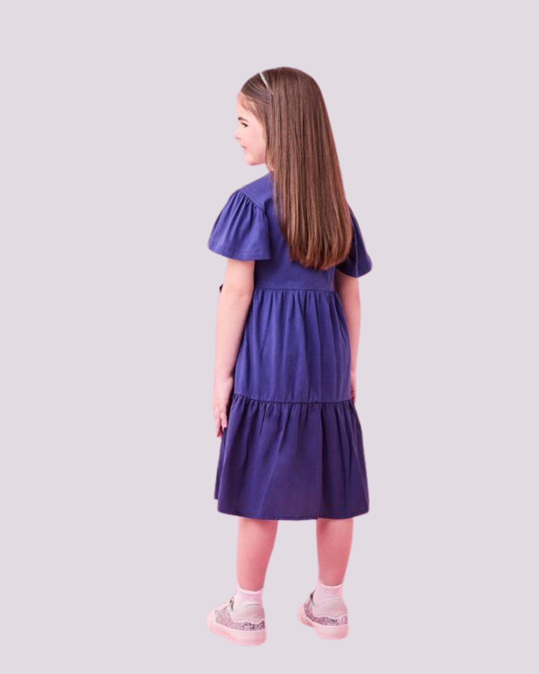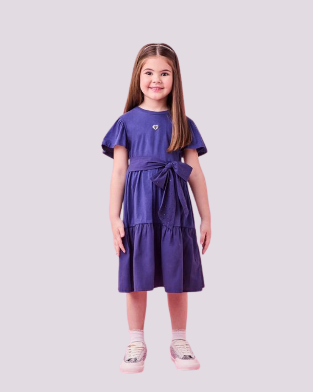 Vestido azul com laço e detalhe bordado, ideal para um look delicado, moderno e cheio de charme!