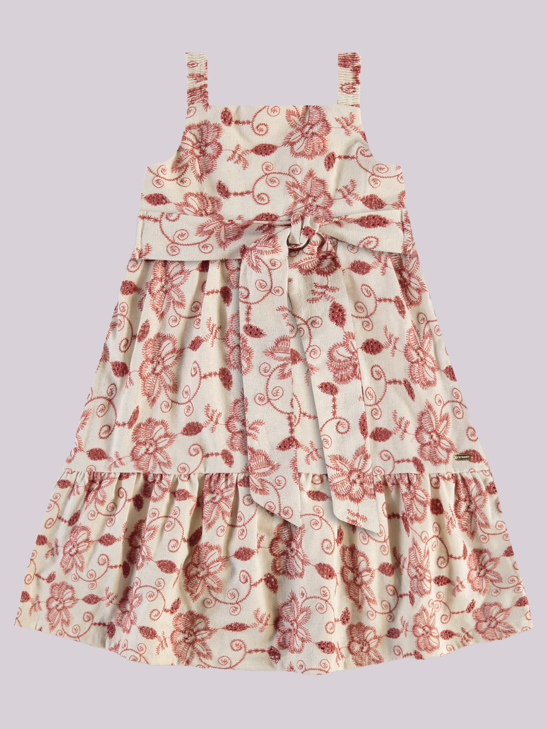Vestido midi super delicado, com estampa floral bordada em relevo, modelagem em camadas e detalhe lateral com amarração. Um look sofisticado e confortável para compromissos especiais ou passeios em família.