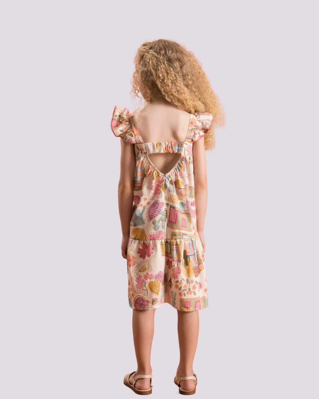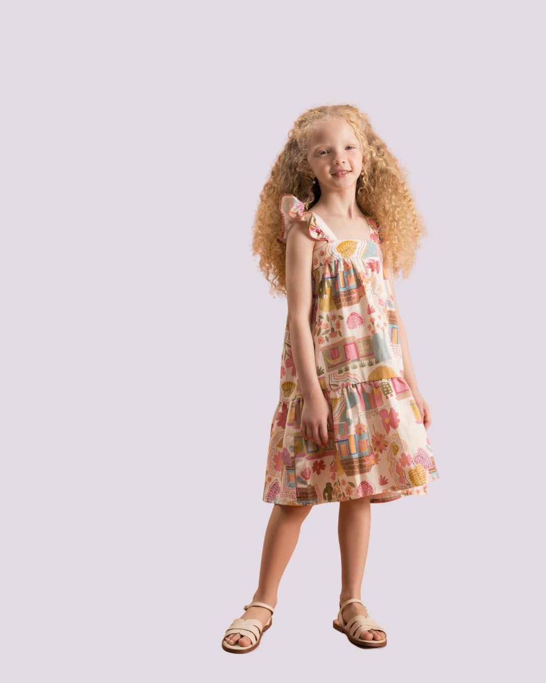 Vestido Bugbee estampado, leve e cheio de charme para os dias ensolarados.