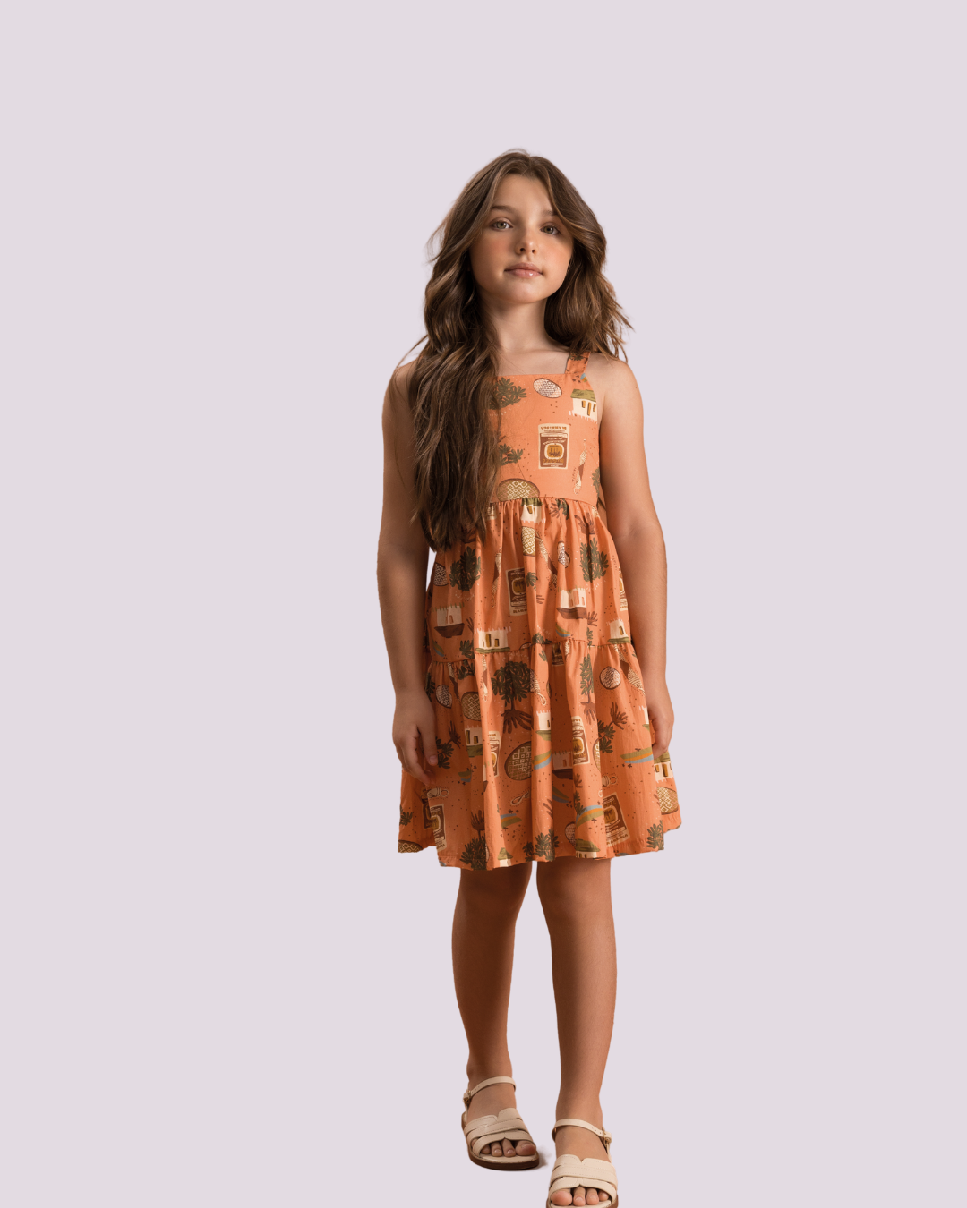 Vestido Bugbee estampado laranja, frescor e charme em um só look.